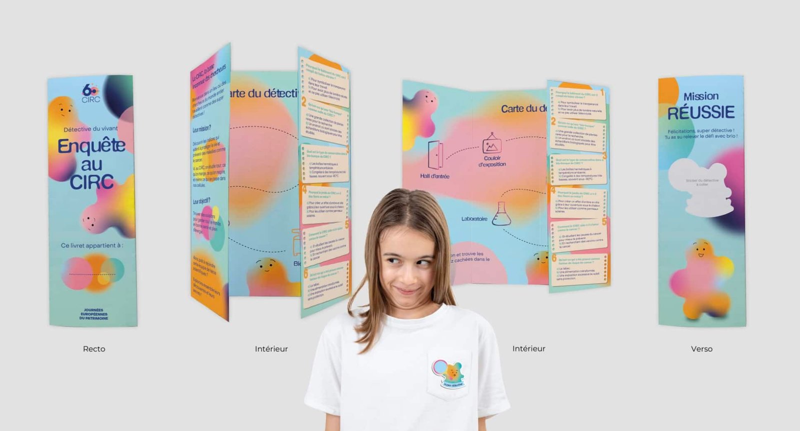 Parcours ludique avec quiz interactif pour les enfants, signalétique immersive, identité visuelle colorée